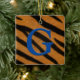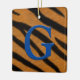 Dieses Ornament hat ein blaues Monogramm über Tigerstreifen. Passen Sie den Rücken mit Ihrer eigenen Nachricht an.