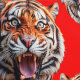 Seamless Repeat Roaring Tiger Head Pattern Design On Red Background