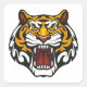 Ein Tigerkopf mit offenem Mund. Dieses Design sieht auf diesen Aufklebern wirklich effektiv aus