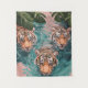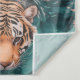 Tauchen Sie ein in eine spielerische Szene von drei Tigern, die sich beim Schwimmen amüsieren. Diese flache Abbildung zeigt die majestätischen Kreaturen in einer lebendigen Farbpalette, mit nahen Aufnahmen ihrer Köpfe, die über dem Wasser schweben. Die einfachen Linien und die hohe Sättigung des Kunstwerks schaffen ein optisch ansprechendes und faszinierendes Stück.