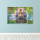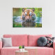 Gewandte Leinenkunst wird mit einem Foto-Kunstdruck eines wunderschönen wilden Tigers im Wasser gezeigt. Lizenziertes Bild
