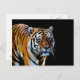 Atemberaubendes Foto eines wunderschönen Tigers, der vor einem schwarzen Hintergrund stehend wurde.