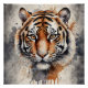 Ein Tiger mit detaillierter Wasserfarbe mit ausdrucksvollen Augen wird vor einem weichen, verschwommenen Hintergrund dargestellt. Die natürlichen Farben verstärken das lebensechte Aussehen.