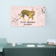 Rufen Sie alle Party Tiere Geburtstag Thema mit der Illustration von brüllenden Tiger mit einem rosa Party Hut mit rosa Hintergrund und schwarzen Farbe Spritzer Design.