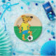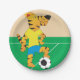 Ein Tiger, der Fußball stehend auf einem Fußball spielt. Dieses Design wirkt auf diese Paper-Teller sehr effektiv