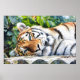 Malstil. Mit diesem lebhaften Tigerbild, das sich auf einer Holzplattform, umgeben von üppiger Vegetation, in aller Ruhe auf dem Power der Wildnis ruhen lässt, können Sie den ruhigen Ort in vollen Zügen genießen. Die teilweise offenen Augen und die entspannte Haltung rufen ein Gefühl der ruhigen Wachsamkeit hervor, während das reichhaltige Detail in der Fell- und Naturkulisse Tiefe und Realismus verleiht. Ideal für Naturliebhaber, naturgetreu inspiriert Dekor oder für alle, die in der majestätischen Vielfalt großer Katzen gezeichnet sind.