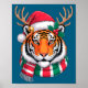 Tiger Reindeer Christmas Santa Hat Tiger Xmas Poster