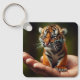 Dieser Schlüsselanhänger hat einen niedlichen Tiger darauf.