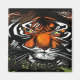 Die originelle Malerei eines Tigers sieht vor dem Anstarren. Erstellt mit Acrylfarbe auf Leinwand.