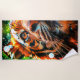 Dieses Strandtuch hat einen Tiger auf dem Bild.