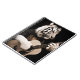 Minimalist, stylized artwork featuring a white tiger playing an acoustic guitar. Dramatic contrast and clean lines create a serene, artistic vibe for home item