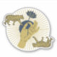 Dieser Aufkleber hat zwei blaue und goldene Tiger, eine Hand mit einer Blume und einem Sonnenbrand.