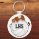 Runder weißer Schlüsselanhänger mit Darstellung des Tigerkutsches auf einem Volleyball. Angepasst mit Ihren Schulinitialen, oder fügen Sie einen Namen oder Phrase wie "Go Tiger!" Spaß für Volleyballspieler, Eltern, Booster oder Trainer.