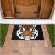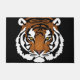 Schöne minimalistische abstrakte Vektorkunst eines Tigerkopfes, der in kühnen Farben nach vorne gerichtet ist.