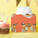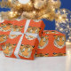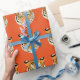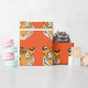 Umschlagpapier mit einem niedlichen Tigerprint auf orangefarbenem Hintergrund. Passen Sie dieses Objekt an oder kaufen Sie, wie es ist.
