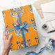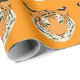 Umschlagpapier wird mit einem niedlichen Tigerprint auf orangefarbenem Hintergrund angezeigt. Passen Sie dieses Objekt an oder kaufen Sie, wie es ist.