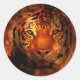 Orangefarbenes und schwarzes Tigergesicht kombiniert mit einer Waldszene, um es so zu machen, als ob es in das Holz verschmolzen wäre ein einzigartiger Aufkleber