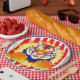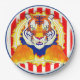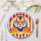 Diese Party-Papiertafel ist ideal für ein Picknick im Sommer 4. Juli! Ein wagemutiger Tiger springt durch einen Feuerring! Hintergrund mit Big Top Rot und Weiß Streifen *Besuchen Sie Fun4UDesign Kollektionen für passende Circus Tiger Produkte!