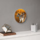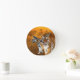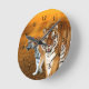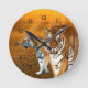 Zwei orangefarbene Tiger ziehen unter goldfarbener Sonnenstrahlen Wanduhr