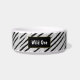 Stilvolle Kätzchenspeise mit Grafiken aus schwarz-weißem Tiger gestreiftem Fell, um die Schale herum, und ein goldfarbener, schwarzer Textbereich in der Mitte, für den Namen Ihres Haustieres. Der weiße Text erlaubt es Ihnen, den Namen Ihres Haustieres anzupassen, für eine personalisierte Schüssel, auf die Ihr Freund stolz sein kann. Macht die richtige Geschenkidee.