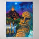 Nur noch eine mondbeleuchtete Nacht für den Ti-Gott. Hochauflösender Scan der Tiki-Illustration, perfekt für eine Ti-Bar oder eine Retro-Zuhause. Wählen Sie es gerahmt oder uneingerahmt, Leinwand oder Papier.