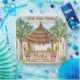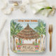 Die Teller des tropischen Luau-Themenviertels sind mit einem Tiki-Bar in Aquarellfarbe (mit Papagei und Cocktails) gerahmt, der von Palmen, Tiki-Fackeln und Totems mit "It's Tiki Time" und Aloha-Aufnahmen in Schriftart im Inselstil geprägt ist. Der Text kann personalisiert sein (z.B. wird hier mit zwei Namen angezeigt, als wäre es eine Dusche für ein Paar, aber man könnte den Text personalisieren und in "Happy Birthday Marley" ändern, oder was auch immer die Anzüge Ihrer Feier sein mögen). Ideal für Hochzeiten, Duschen, Geburtstag, Jubiläum oder jede Inselfeier. Kunst von KL Stock.