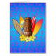 Hawaiische Tiki Maske mit retro Vintagen Artsurfbrettern, gelben Hibiskus-Blumen, Ozeanblauhintergrund und einem rosa Muster der hawaiischen Honu Seeschildkröten und der tiki Masken.