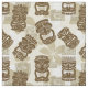 Spaß Tiki geht gegen einen Hintergrund der tropischen Blumen und der polynesischen Symbole voran. Ein großes Gewebe für Ihr Retro nähendes Projekt!