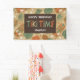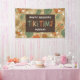Das Tiki Party Geburtstagsbanner zeigt ein rustikales Holzschild in der Mitte mit Typografie "Tiki Time" und "Happy Birthday" mit einem personalisierten Namen, der von Tiki Totems, Ananas, Hibiskus-Blume, Palmen und Monstera-Blätter gesäumt wird. Ideal für Geburtstagsfeiern mit tropischen, luauischen und Strandthemen.