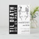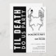 Schwarzweiß "bis zum Tod tun uns Party" Bachelor / Junggeselinnen-Abschied Einladung. Skelettbride und Bräutigam Design, das sich hervorragend für ein Halloween-Hochzeitsfest eignet. Personalisieren Sie den Text und die Farben für Ihre Veranstaltung.