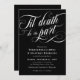 Elegantes, dunkles Halloween oder eine gute Hochzeitseinladung mit dem Tode Til machen uns zum Teil in einem Wirblen, weißen Kalligraphieskript geschrieben. Fügen Sie Ihre Einladung in Weiß vor einem schwarzen Hintergrund.