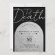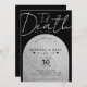 Coole Schwarz-Grau Hochzeitseinladung mit Kopfstein und Text Til Death do us Part. Personalisieren Sie es mit Ihren Hochzeitsdetails und fügen Sie ein Foto des frisch verheirateten Paares auf der Rückseite hinzu.