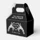Schwarz bis Tod tun wir Teil Gastgeschenk Hochzeit Box mit Skelett Herz Hand und Name Monogramm. Personalisieren Sie es mit Ihren Veranstaltungsdetails. Ideal für eine gotische oder Halloween Hochzeit / Brautparty / Junggeselinnen-Abschied.