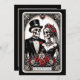 Dunkelschöne Hochzeitseinladung mit Till Death Do Us Part Sprichwort, Tarot Card Stil und Braut und Bräutigam Skelett Paar. Blackletter Typografie fügt genau die richtige Touch hinzu. Fügen Sie Ihre Hochzeitsdetails hinzu, um eine besondere Einladung zu erhalten, um Ihren persönlichen Stil zu zeigen. Sehen Sie die Koordination der Artikel in unserem Shop, Verzauberte Finch.