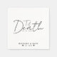 Elegante schwarz-weiße Hochzeitsnapkins mit Text Til Death do us Part. Personalisieren Sie es mit Ihren Hochzeitsdetails.