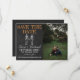 Ein phantastisches Foto Save the Date, das mit einem Kalkboard-Design und weiß-orangefarbenen Schriftart betont wird. Perfekt koordiniert mit der Hochzeitskollektion von Til Death.