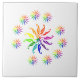 Blätter in Standardfarben des Farbrads des Künstlers (rot, orange, gelb, grün, blau, lila). Acht kleine Cluster bilden einen Kreis um einen großen Cluster.