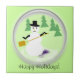 Schneemann ist eine harte Arbeit, Schnee in seinen Globus zu schütteln. Im Text unten steht "Happy Holidays!" (vielleicht personalisiert). Passen Sie die Hintergrundfarbe an (standardmäßig hellgrün)...
