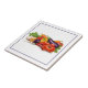 Dieses Trivet aus Keramik wird mit einem hübschen Gemüsegruppenkunstdruck gezeigt. Hat eine lila Grenzlinie. Passen Sie dieses Objekt an oder kaufen Sie, wie es ist. Börsenbild all-free-download.com