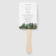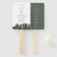 Mit diesem maßgeschneiderten Hochzeitsfan aus der Timberline-Kollektion von Redwood & Vine Design Co. Entworfen mit einem ruhigen grünen Wald und einem Bergmotiv ist dieser doppelseitige Paddle-Fan perfekt für elegante Hochzeiten im Freien, gemütliche Winterfeiern oder rustikale Waldfeiern. Die Vorderseite Kontur Ihre Zeremonie Timeline, während die Rückseite zeigt Ihre Hochzeitsfeier. Ein charmanter und praktischer Sake für die Gäste, der ein Thema der Waldhochzeit mit raffinierter Einfachheit ergänzt.