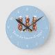 Piggy Chiefs Cook up some bacon and eggs on this cute numbered kitchen wall clock. Background is a soft blue. The white text reads, "Time for bacon & eggs!"