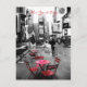 Schwarz-Weiß-Foto vom Times Square in New York City mit roten Akzenten, die Ihren Blick einfangen