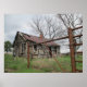 Ravaged by time and weather a small home is just a whisper of itself. The old farmhouse stands alone with its falling clapboard siding and rusting tin roof. Country setting in the beginnings of spring with the vibrant green grass and barren trees before they awaken with leaves. Surrounded by a barbwire and steel fence. It is an overcast day repeating the grays the building now wears.