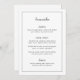 Elegant wedding menu featuring a simple design with serif and script fonts inside of a border. Use the template to add the name of each guest and skip the place cards.