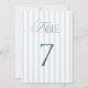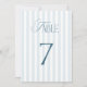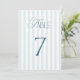 Timeless Blue Stripes Wedding Table Number 7 Sign Einladung