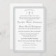 Design features the traditional format for a Catholic wedding invitation displayed in a silver-colored font against a white background. Top displays the monogram of bride and groom on either side of a cross. A small heading is featured above as an arch. Design is framed by an elegant silver and white colored border.