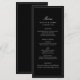 Perfect for formal and black-tie weddings, this menu card beautifully presents your meal selections while enhancing your table décor. The high-contrast black background paired with elegant typography ensures readability and a cohesive upscale aesthetic.