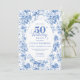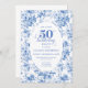 Timeless Royal Blue Toile de Jouy 50th Birthday Einladung