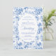 Make a refined first impression with this wedding invitation featuring classic French toile de jouy roses in elegant shades of navy blue, royal blue, dusty blue, and deep blue. Inspired by timeless European floral design, this invitation blends traditional sophistication with modern elegance, perfect for a classic, romantic, or formal wedding celebration.