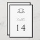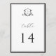 Elegant Botanical Crest wedding monogram, table number card. Vintage inspired crest adorned with botanical branches. Features, elegant black typography design style mix of script and bold type. Please note that table number cards must be ordered individually.